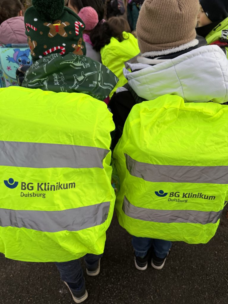 Ein besonderer Dank gilt dem BG Klinikum, das unseren Erstklässlerinnen und Erstklässlern einen reflektierenden Regenschutz für den Tornister zur Verfügung gestellt hat.